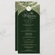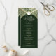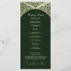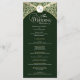Ce programme de mariage comprend un riche arrière - plan vert orné de fleurs damassées dorées, créant un style luxueux et intemporel. Une crête décorative se trouve en haut, tandis que la disposition centrale met en valeur les noms du couple et tous les détails du service mariage dans un format raffiné et organisé. L'association élégante de vert et d'or apporte un look sophistiqué et royal, faisant de cette carte programme un choix parfait pour les mariages de soirée, traditionnels et formels.