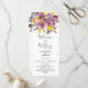 Élégant programme de mariage hivernal violet d'automne avec une calligraphie moderne et élégante le mariage de Script dans les fleurs violet, orange et jaune avec feuillage vert sauge.