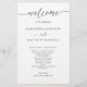 Elégant programme de mariage avec de beaux détails de calligraphie manuscrits modernes. Moderne, simple et élégant. Possibilité de modifier et d'ajuster le texte en sélectionnant la personnaliser plus loin. Avant avec les détails de la cérémonie mariage, retour avec les noms de la fête de mariage et message de remerciement pour vos invités. Design noir et blanc. La couleur blanche "couleur arrière - plan" peut être changée en n'importe quelle autre couleur en modifiant à l'aide de l'outil de conception. Une partie de notre collection "Elegance Minimal Black and White Monogram Mariage Collection" avec une variété de produits de coordination disponibles.