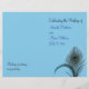 D'élégantes plumes de paon décorent ce programme de mariage sur un arrière - plan turquoise. Il est imprimé sur le papier léger du prospectus afin qu'il soit facile à plier en deux.