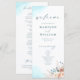Présentez vos invités à votre journée spéciale avec ce programme de mariage élégant sur la plage. Doté d'un design d'aquarelle serein en bleu, turquoise, turquoise et pêche, agrémenté de délicats détails floraux, il allie à merveille charme boho et élégance côtière moderne. Idéal pour un mariage à la plage, ce programme ajoute une touche de sophistication tout en capturant la beauté naturelle de votre célébration balnéaire.