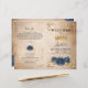 Créez vos propres élégants programmes de quinceanera bleu marine et or à l'aide d'un papier parchemin facile do-it-yourself modèle qui est simple à personnaliser. Le design floral vintage créé avec l'oeuvre originale de Raphaela Wilson met en valeur des roses bleu foncé aux jolis accents d'or faux métallique, une princesse tiara/couronne, des confettis papillon étincelant parties scintillant, ainsi qu'une luxueuse bordure en figuier. La typographie noir chic combine script de calligraphie et polices modernes, mais n'hésitez pas à changer le style à votre goût. L'ancienne feuille de papier parchemin vintage scroll peut être plié facilement en deux, et est idéal pour un ranchera rustique mexicain sucré 16/15 anniversaire (ainsi que des mariages de contes de fées et autres célébrations spéciales). Assurez-vous d'ajouter dans vos détails personnalisés, tels que les noms, la date, l'emplacement, la cérémonie de masse / l'information sur la commande de service, la fête honorée des chambelanes / damas, et un message de remerciement sincère. Si vous préférez garder votre texte au minimum, remplacez un bloc ou 2 par une photo glamour Mis Quince Anos. Votre programme de coing bleu marine et or peut être chéri comme un gardien longtemps après le grand jour est passé. Bon appétit ! Catégorie : programme plié quinceañera programme/modèle; programmes de mariage aquarelle élégants avec thème marine et or; et programmes de mariage élégant avec papillons. Couleurs de coing or et marine : bleu foncé, bleu marine, saphir, bronzé, brun clair, beige, doré champagne jaune et noir.