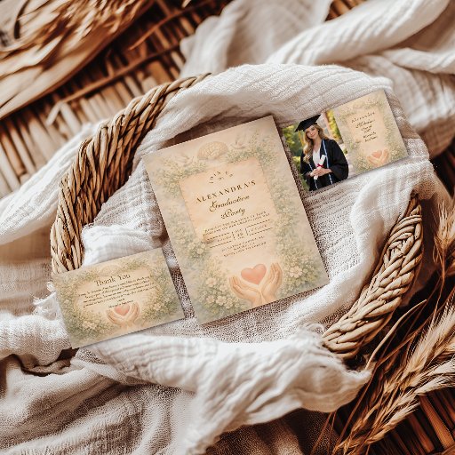 Celebrate a major academic milestone with this elegant psychology graduation design, inspired by classical scholarship and refined academic symbolism. Featuring stacked psychology and neuroscience books, a graduation cap, botanical details, and soft parchment textures, the artwork reflects dedication, intellect, and years of study.
