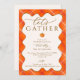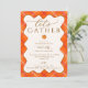 Elegant Pumpkin Orange Plaid Thanksgiving Dinner Invitation - A unique elegant Thanksgiving Party invite template. Cozy, autumn orange, terracotta, cream and brown classic fall colour palette with plaid pattern background. A wavy frame adds a touch of playful fun while stylish script with calligraphy swirls add a sophisticated touch. A small, watercolor pumpkin is the perfect little autumn detail. Customize this editable Thanksgiving Dinner Party Invitation template with your own event details. Available to order in prints or as an instant digital download.