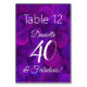 Elegant Purple 40 and Fabulous Birthday Party Name Table Number