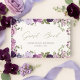 This elegant and classic guest book is a beautiful way to capture memories from your special day. It features a stunning hand-painted watercolor floral design with an intricate wreath of purple, lavender, violet, and mauve flowers. The front cover is personalized with the couple's names and wedding date in an elegant script font. This guest book is perfect for guests to sign, leave well wishes, and share advice. It is a lovely keepsake from your wedding day and can also be used for an engagement party or bridal shower. The refined design adds a touch of sophistication to any wedding theme.