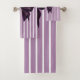 Embrace timeless style with this elegant bathroom set, showcasing a beautiful deep purple bow centered on a backdrop of bold vertical stripes. The soothing lavender and white stripes provide a clean, classic foundation, while the detailed bow adds a focal point of rich color and texture. This set is designed to offer both exceptional comfort and decorative appeal, making your bathroom a more inviting and stylish place.
