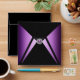 Elegant black and purple envelope with diamond trim. Matching multi-purpose party and event invitation template: