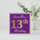 Elegant, Purple, Faux Gold 13th Birthday + Name Invitation