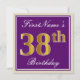 Elegant, Purple, Faux Gold 38th Birthday + Name Invitation