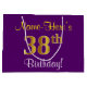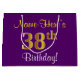 Elegant, Purple, Faux Gold 38th Birthday + Name Large Gift Bag