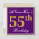 Elegant, Purple, Faux Gold 55th Birthday + Name Invitation