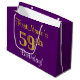 This simple, elegant birthday gift bag design features a personalized message like "FirstName’s 59th Birthday!" (with the "59th" having a faux/imitation gold-like colouring look) on a purple coloured background. The name is in script-like, yellow-coloured text, and can be personalized. A personalised birthday themed gift bag like this could perhaps be used when giving a present or gift to somebody who is celebrating their fifty ninth birthday. [~Z0000255]