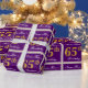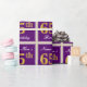 This simple and elegant wrapping paper design features a personalized message like "Name-Here’s 65th Birthday" (with the "65th" having a faux/imitation gold-like colouring look) within a purple-coloured square area featuring a simple border outline. The name is in an elegant white-coloured script-like text, and can be customized. Wrapping paper like this could perhaps be used when wrapping birthday gifts for somebody who is celebrating their sixty fifth birthday. [~Z0000220]