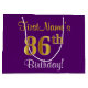 Elegant, Purple, Faux Gold 86th Birthday + Name Large Gift Bag