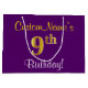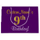 Elegant, Purple, Faux Gold 9th Birthday + Name Large Gift Bag