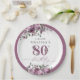 Elegant Purple Floral 80th Birthday Paper Plate