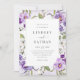 An elegant purple watercolor floral wedding invitation with a faux silver border. This unique purple wedding invite features a modern calligraphy script and serif font. Edit this wedding invitation template yourself using the online tools at Zazzle. Designs are flat printed illustrations/graphics - NOT ACTUAL SILVER FOIL.