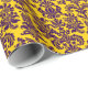 Elegant Purple Floral Damasks Yellow Background Wrapping Paper