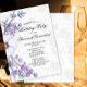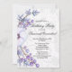 A charming damask birthday party invite with a gorgeous purple arrangement of flowers and sprigs of berries. There is a soft grey damask and white background on both the front and the back of the card.