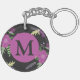 Elegant Purple Flowers Art on Black Monogram Keychain