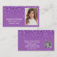 These elegant purple business cards with purple glitter sprinkling down from the top edge would be fabulous for you. The front features your photo, your name, title and business name. The back has your address, phone number, social media information, and QR Code. It's super easy to upload a photo and use the templates. In just a few seconds you can see your luxurious business cards. These are perfect for a nail technician, hair stylist, makeup artist, esthetician, beauty salon, skin care specialist, or lash and brow specialist.
