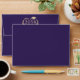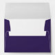 Elegant purple graduation return address envelope. The back flap features "Class of" and the year in a gold illustration of laurel wreath, with a gold grad cap and diploma, the graduate's name in a gold script and their address in gold lettering.