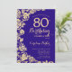 Elegant Purple Gold Roses 80th Birthday Invitation