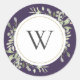 Elegant Purple Greenery Monogram Initial Classic Round Sticker