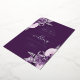 This elegant wedding invitation features purple and lilac floral bouquets set off with silver faux foil greenery in two corners, on a purple background. The customizable text combines real silver foil serif, italic and handwriting fonts. The reverse side features a matching purple and silver floral design.