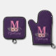 Elegant Purple Pink Floral Monogram Initials Oven Mitt & Pot Holder Set