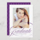Celebrate your graduate’s achievement with this elegant graduation announcement, featuring their senior photo paired with beautiful purple modern calligraphy. Personalize the announcement by adding the graduate’s name, school name, and graduation year, creating a truly unique keepsake to commemorate their special day. This stylish and sophisticated design is perfect for high school or college graduates, offering a refined way to share this important milestone with friends and family.