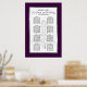 Add your own special touch to this elegant design featuring modern script, purple and black text including a starry silver Christmas tree with a metallic silver frame with a purple background. This seating chart design features the bride and groom's names along with the words "Eat, Drink, and Be Merry" and "Please Find Your Seat". Templates are provided for up to eight tables with up to 8 or 9 names per table.