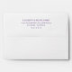 This wedding envelope features a minimalist design with a clean, white background and a muted purple colour palette. The layout is simple and centred, emphasizing elegance through ample negative space and balanced composition. Typography plays a key role, using a serif font for the names and a sans-serif font for the address, creating a modern yet understated look. Perfect for couples seeking sophistication without ornamentation, this design conveys clarity and refinement, making it ideal for weddings that celebrate simplicity and style.