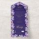 Elegant purple violets formal floral design "90th Birthday Party" gold foil all-in-one design with RSVP featuring a floral frame of violets and real gold foil text (inside) with a distressed violet and white stardust background on outside with dark purple text.