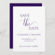 This simple minimalist save-the-date card is perfect for announcing your upcoming wedding. This card features a purple-and-white design with elegant text. Customize text on the front and back of the card with all the details of your special day. #savethedate #ourwedding #minimalistwedding