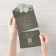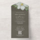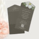 This design features a QR code rsvp online floral wedding invitation, with white floral magnolia template simple, on a budget trifold classic, an elegant all in one boho, watercolor earthy neutral tones colours, a classy modern minimal, with scan scannable guest response reply, a traditional calligraphy script formal, with an all in one greenery foliage, an elegant minimalist stationery suite