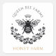 Étiquette de produits d'affaires de miel à thème d'abeille. Élégante reine abeille et couronne en forme de cercle de couronne de laurier. Un beau style rustique terroir avec typographie noir et or sur blanc. Un thème d'abeille pour un apiaire, une entreprise de produits du miel, ou toute entreprise qui résonne avec le symbolisme de l'abeille.