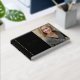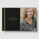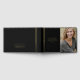 In Loving Memory, Funeral / Celebration of Life photo guestbook, with a simple, minimal, and elegant design with a soft velvety hardcover in an attractive black tone, and real foil stripes, and text details. Choose from three size options and three foil colours: gold, silver, or rose gold. Personalize it with your loved one information on the front and spine and add on the back any message you like.