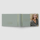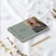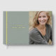 In Loving Memory, Funeral / Celebration of Life photo guestbook, with a simple, minimal, and elegant design with a soft velvety hardcover in an attractive sage tone, and real foil stripes, and text details. Choose from three size options and three foil colours: gold, silver, or rose gold. Personalize it with your loved one information on the front and spine and add on the back any message you like.
