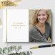 In Loving Memory, Funeral / Celebration of Life photo guestbook, with a simple, minimal, and elegant design with a soft velvety hardcover in white, and real foil stripes, and text details. Choose from three size options and three foil colours: gold, silver, or rose gold. Personalize it with your loved one information on the front and spine and add on the back any message you like.