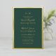 This elegant and modern wedding invitation is perfect for any season. It features a real gold foil thick border, monogram initials, and last names with a simple forest green background and matching signature script typography. It's unique, classic, minimal, and chic; the perfect design to impress your guests, friends, and family.
