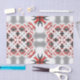 This tissue paper features a unique and intricate design that combines geometric and organic elements to create a visually striking pattern. The central motif is a symmetrical, kaleidoscopic arrangement of shapes resembling stylized floral patterns, with a bold colour palette of red, black, and white. This contrast enhances the complexity of the design, making it stand out. Surrounding this are softer grey shapes that provide a sense of depth and contrast to the sharper central figures. The overall effect is one of elegance and dynamism, making this tissue paper an eye-catching option for gift wrapping or crafts that require a touch of sophistication and artistic flair.