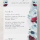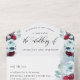 Delight your guests with this elegant floral All-in-One Wedding invitation with perforated RSVP. Environmentally friendly invitation as there is no need for extra insert cards, RSVP cards or RSVP envelopes, this invitation has it all! Ability to add both Wedding Ceremony and Reception details, as well as RSVP postcard ready for guests to fill in and mail! Captivating design with cascading blue watercolor stain and exquisite watercolor flowers in a beautiful blend of dusty blue, navy, mist, red and burgundy tones. Modern hand written calligraphy details. Option to order invitations with printed (or hand write later) guest name or a phrase on the back so you can mail it with no need of envelopes, or add a personal message or quote. Same invitation design with photograph in the back instead of guest names or quote also available. Striking design ideal for the elegant, yet practical and eco-friendly couple!