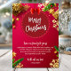Celebrate the holidays with this elegant red and gold Merry Christmas invitation featuring festive ornaments, pine branches, golden snowflakes, and a warm seasonal greeting. Perfect for family gatherings, holiday dinners, office parties, or festive celebrations, this design sets a joyful and welcoming tone for your event.