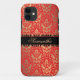 Easily add your own name to this elegant red and gold faux shimmer damask case.