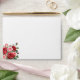 A pretty wedding envelope featuring elegant red and pink roses in the interior with space on the back for the bride and groom's name and mailing address.