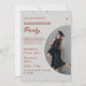 Célébrez vos réalisations académiques avec cette élégante invitation à la fête de remise de diplômes rouge et blanc. Présentant un design élégant et moderne, cette invitation met en avant un diplômé gai détenant un diplôme contre un arrière - plan minimaliste. L'invitation combine des polices serif classiques pour le titre avec un script élégant pour le nom de l'honoré, ce qui le rend à la fois attrayant et sophistiqué. Parfait pour personnaliser avec les détails de votre événement, cette invitation personnalisée est idéale pour annoncer votre fête de remise de diplômes en style. Honore ton voyage et invitation tes proches pour partager ton succès avec cette merveilleuse invitation.