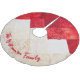A Personalized Patchwork quilted pattern Tree skirt in christmas colours of white and red.