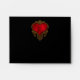 Red black and gold wedding RSVP envelopes with beautiful red and gold heart and red black and gold damask interior. These elegant red black and gold RSVP envelopes are easily customized with your details. Simply use a pen with white or gold ink to fill out your guests names and addresses. The heart is centred on the front since the return address is on the back flap.